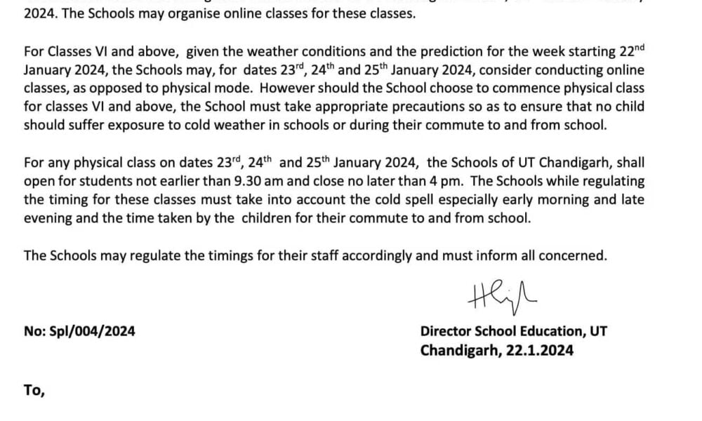 ਸੰਘਣੀ ਧੁੰਦ ਅਤੇ ਠੰਢ ਦੇ ਮੱਦੇਨਜ਼ਰ ਚੰਡੀਗੜ੍ਹ ਦੇ ਸਕੂਲ ‘ਚ ਕੀਤਾ ਗਿਆ ਛੁੱਟੀਆਂ ‘ਚ ਵਾਧਾ ਛੁੱਟੀਆਂ ‘ਚ ਵਾਧਾ:- ਪ੍ਰਸ਼ਾਸਨ ਨੇ ਜਾਰੀ ਕੀਤਾ ਇਹ ਨੋਟੀਫਿਕੇਸ਼ਨ ਚੰਡੀਗੜ੍ਹ/ਦਿਵਿਆ ਸਵੇਰਾ...